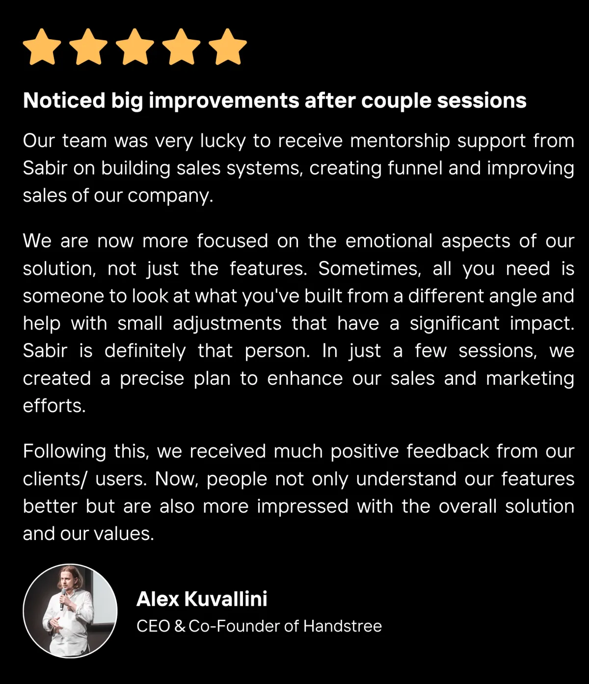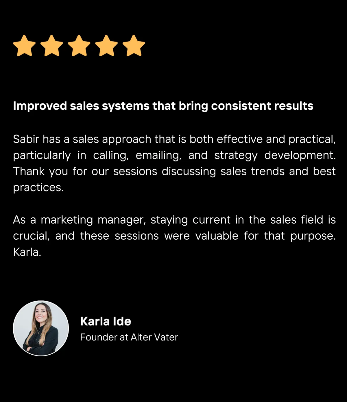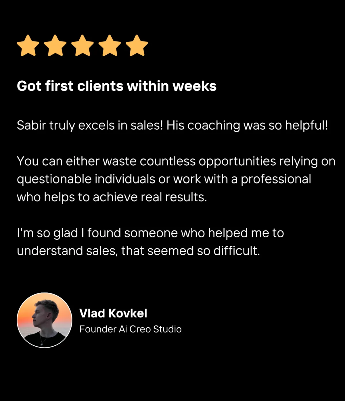 "In just 2 weeks of working with Sabir, I opened opportunities with 2 large clients." [250k EUR total deal size]