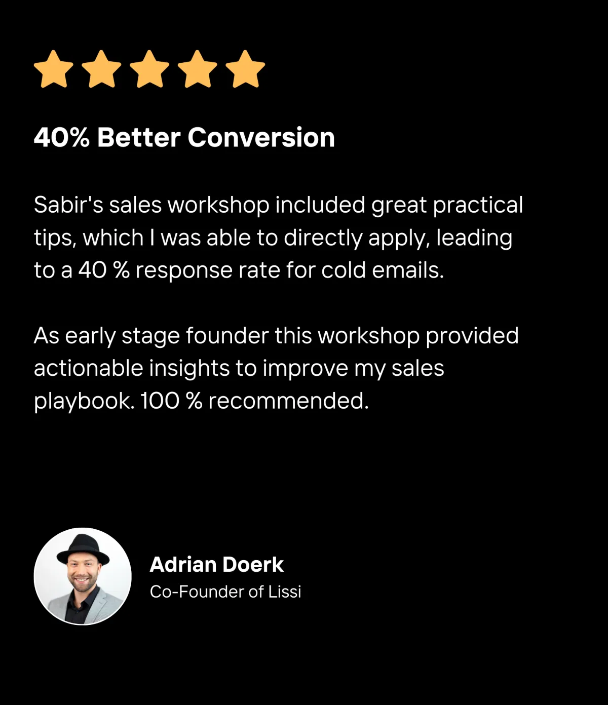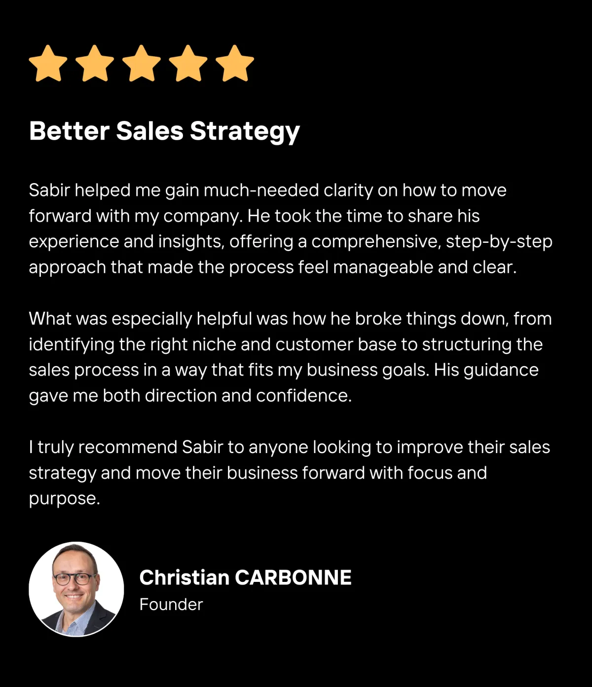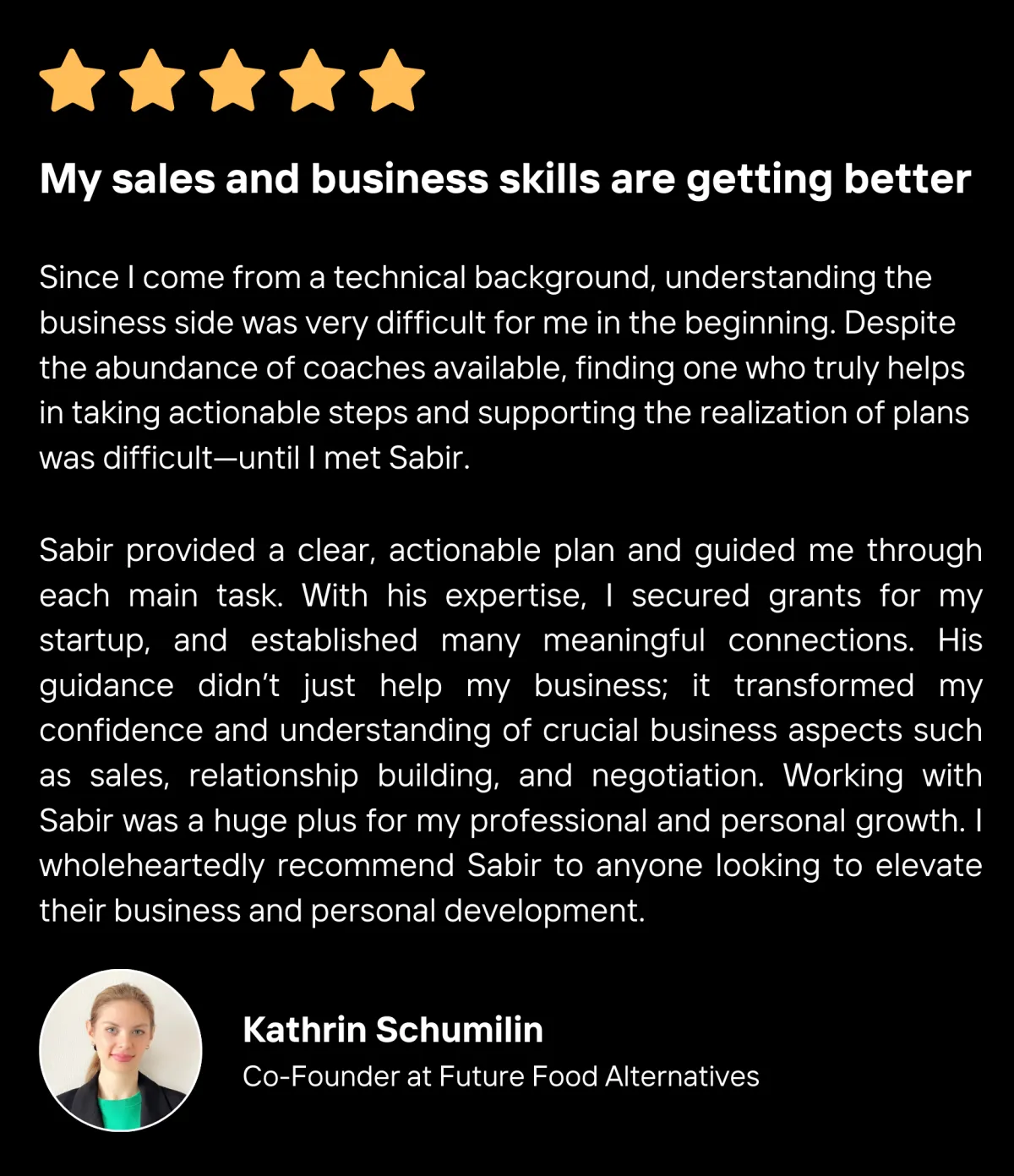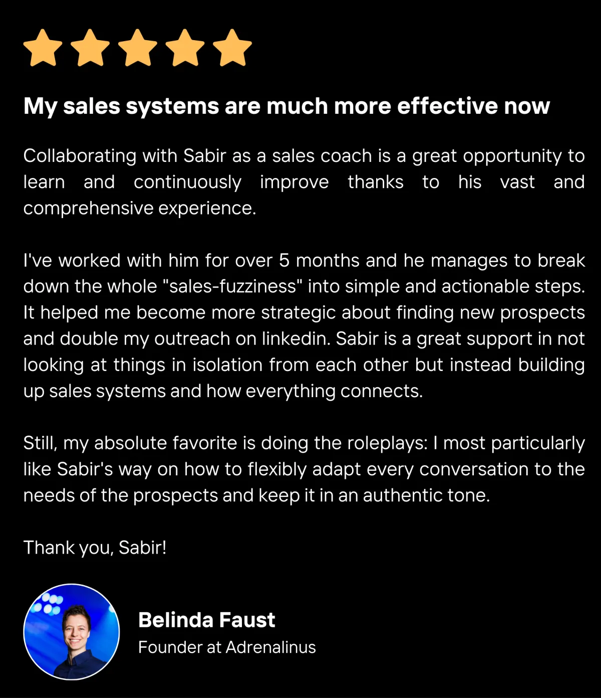 "In just 2 weeks of working with Sabir, I opened opportunities with 2 large clients." [250k EUR total deal size]