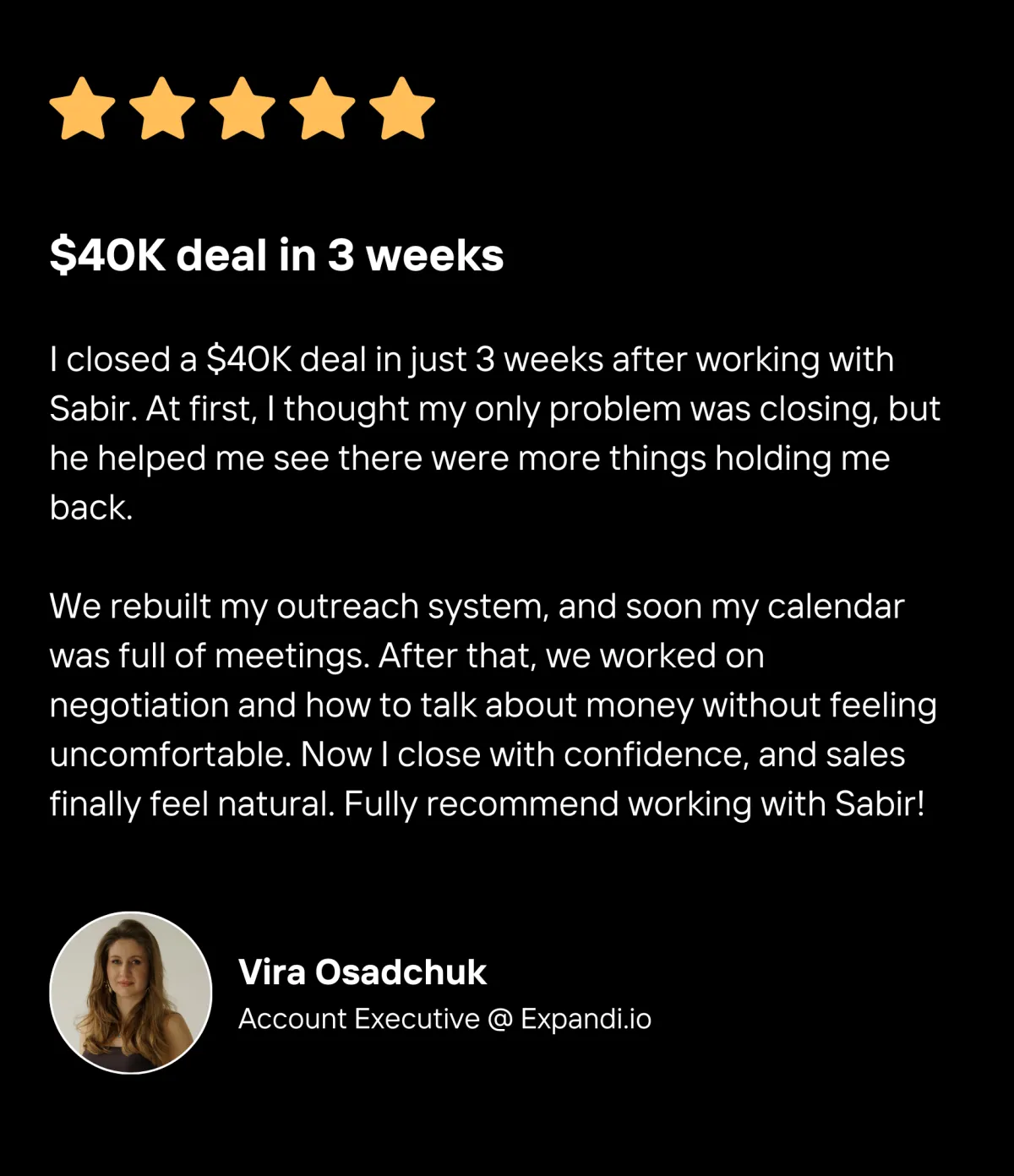 I closed a $40K deal in just 3 weeks after working with Sabir.